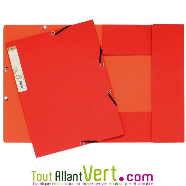 Chemise 3 rabats + étiquette, recyclé, rouge Forever.- 100% carton recyclé.