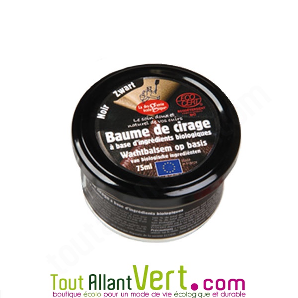 ★ ★ ★ ★ ★4 avis clientsCe baume de cirage Noir est à base d'ingrédients biologique et certifié par Ecocert. Il nettoie, entretient, nourrit, protège, rénove et lustre les cuirs : chaussures, sacs, vêtements... Flacon verre. Fabriqué en France. 75ml.