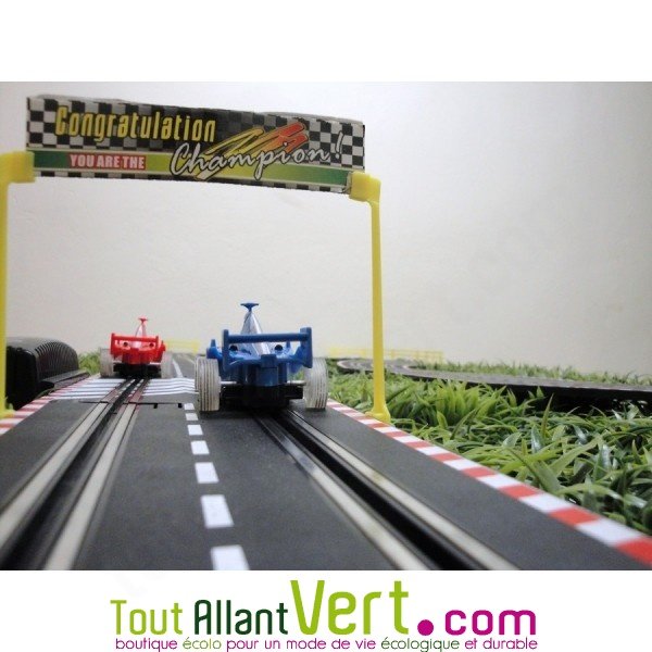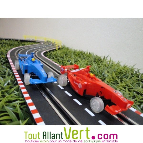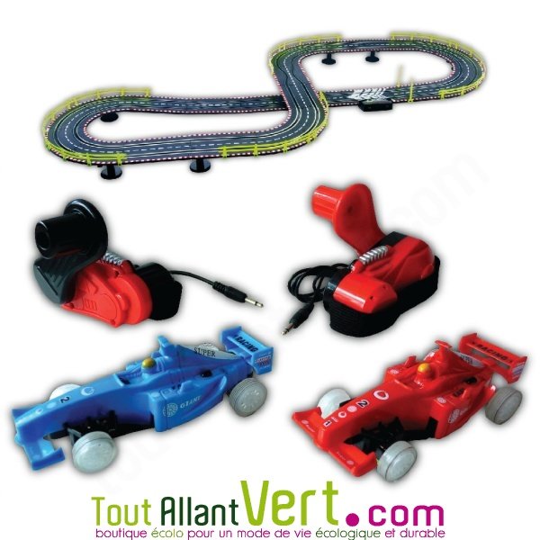 Ce circuit de voiture promet des courses endiablées sans jamais tomber en panne ! Alimentée par une manette à dynamo, c'est vous avec votre manette qui faites avancer les 2 voitures qui tournent sur le circuit. Ce jouet n’utilise pas de batterie.