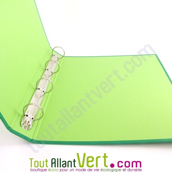 Ce classeur est très robuste en carton 100% recyclé épais. Le mécanisme s'ouvre à 180°. Format des feuilles à classer : 21x29.7 cm. Muni d'une étiquette 10x3,5cm.