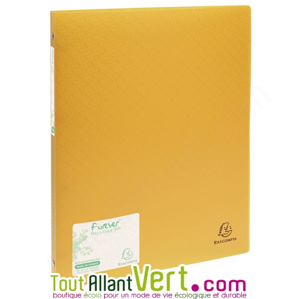 Classeur 4 anneaux en polypropylène recyclé jaune, Forever, dos 2 cm.Ce classeur est en polypropylène 100% recyclé. Il s'ouvre à 180°. Format des feuilles à classer : 21x29.7 cm. Muni d'une étiquette 10x3cm sur le côté pour faciliter le classement.Ce classeur est semi-rigide. D'un aspect plastif...Lire la suite...Informations supplémentairesSUGGESTIONS DE PRODUITSDescription