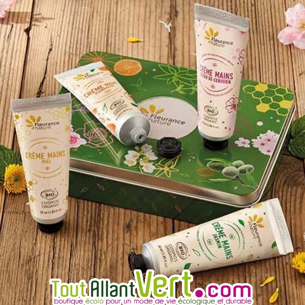 Coffret 4 crèmes mains Bio Fleur de cerisier, Jasmin, Mandarine, Miel de Fleurance Nature