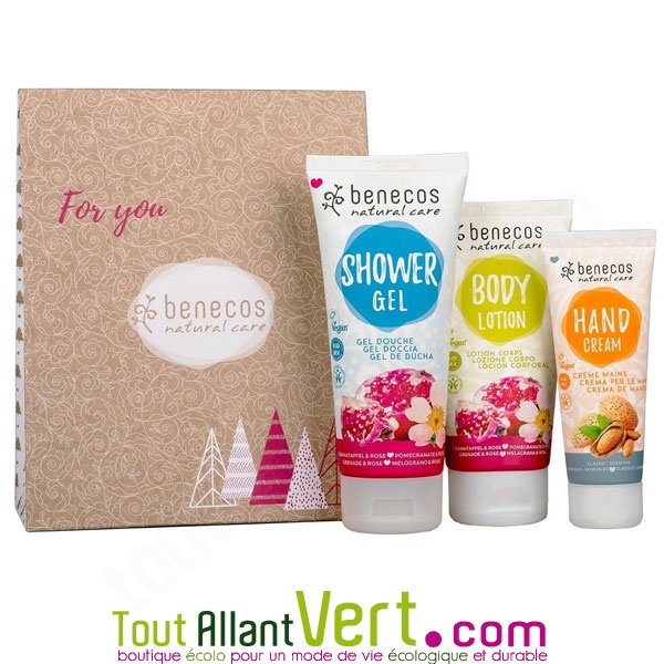 Un coffret à offrir ou s'offrir ! 3 soins de Marque Benecos parmi les préférées des utilisatrices ! A base de Grenade et Rose, le coffret se compose d'1 soin corps, 1 soin main et 1 gel douche. Idéal pour tous. Un parfum frais et envoutant à tester d'urgence ! Certifié BDIH, cosmétique naturelle et vegan.