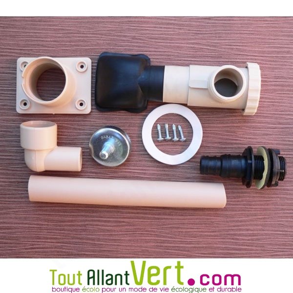 Livré avec tous les accessoires : scie cloche, joints, vis, coude, bandeau, collecteur avec son robinet et tuyau de raccordement de 20cm.