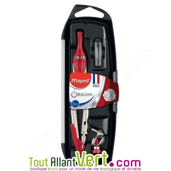 Compas à 2 utilisations : avec mine remplaçable ou crayon. Durabilité et rigidité pour ce compas d'école en acier et plastique. Livré avec sa boite refermable. Coloris rouge. Garantie 3 ans. Fabriqué en France.