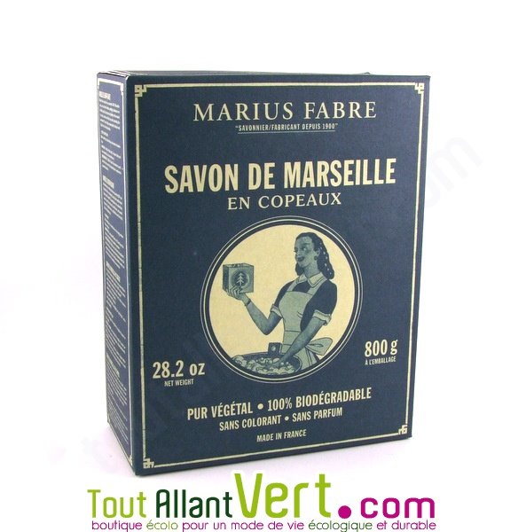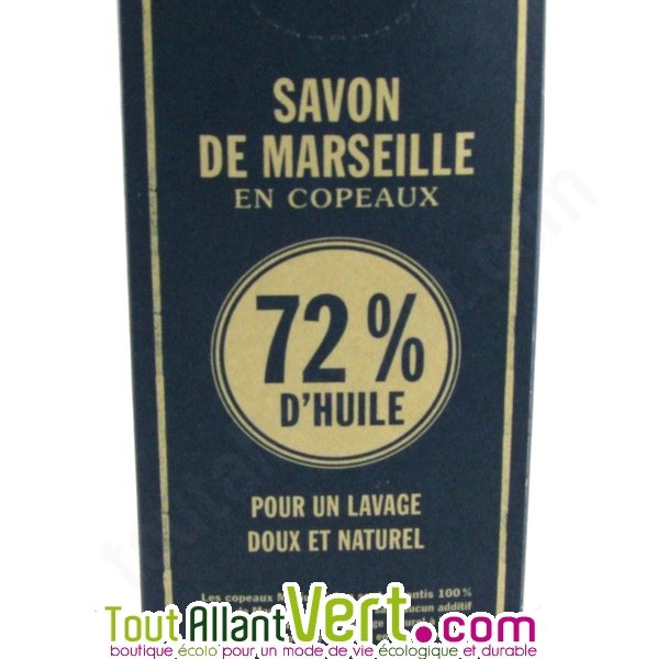 Pour un lavage du linge à la fois doux et efficace. Les copeaux sont pur végétal, sans additifs, colorant ni conservateur et sans huile de Palme. 100% biodégradable. Boite de 750g. Marque Marius Fabre, fabrication française.