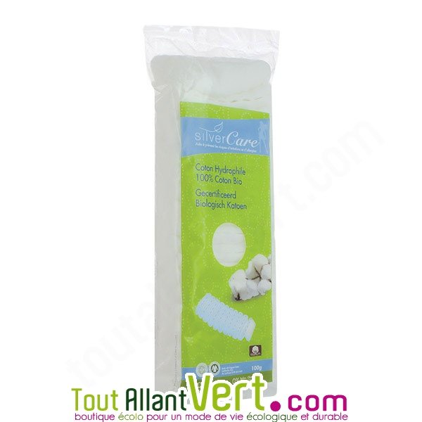 Coton hydrophile prédécoupé 100% coton bio, 100g, SilverCare