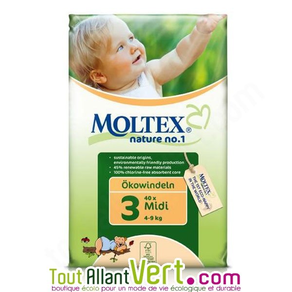 Prix de Couches biologiques Midi (4/9 kg) x34, Moltex : 12.40€