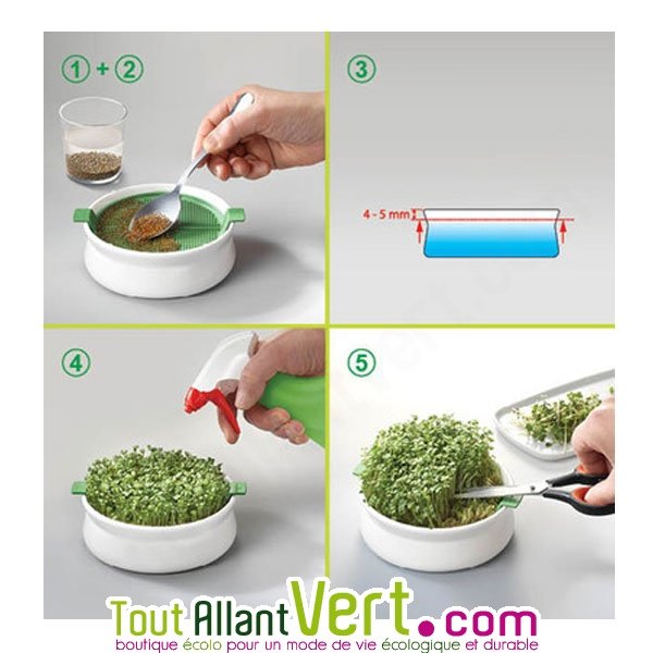 Pour les graines à germer de cresson (alénois et fontaine), basilic, lin, moutarde jaune, roquette lin, chia, perilla, pourpier, roquette, cameline...