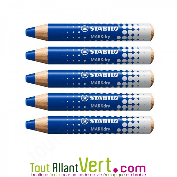 Crayon marqueur Bleu pour tableaux blancs, ardoises et paperboards. Il s'efface d'un simple coup de chiffon sec ou humide. Fabriqué en bois labellisé PEFC, issu de forêts gérées durablement. Sans solvant. Idéal au bureau ou pour les écoliers ! C'est la solution idéale pour remplacer les marqueurs.