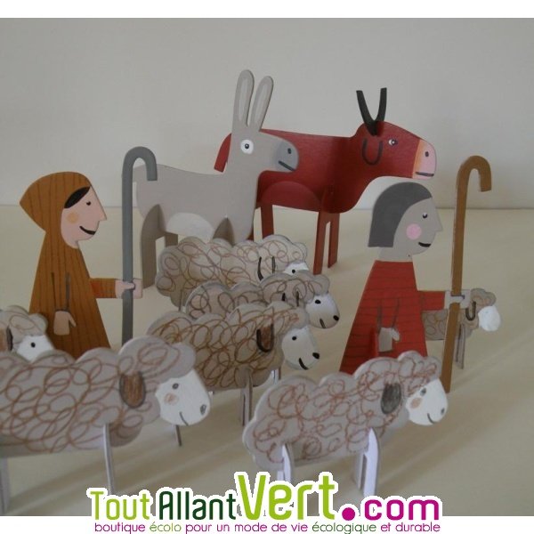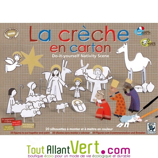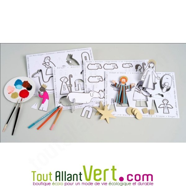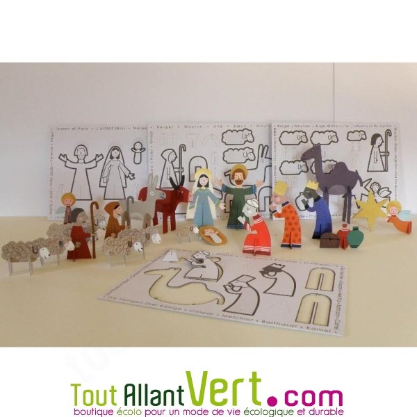 Crèche avec ses 20 silhouettes en carton recyclé à monter et colorier soi-même.