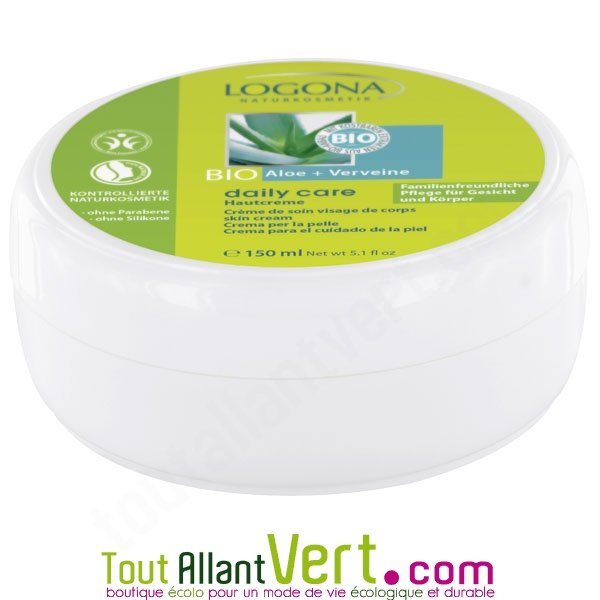 Pot de crème bio, Aloes+ Verveine Bio de Logona.- Pour visage et corps