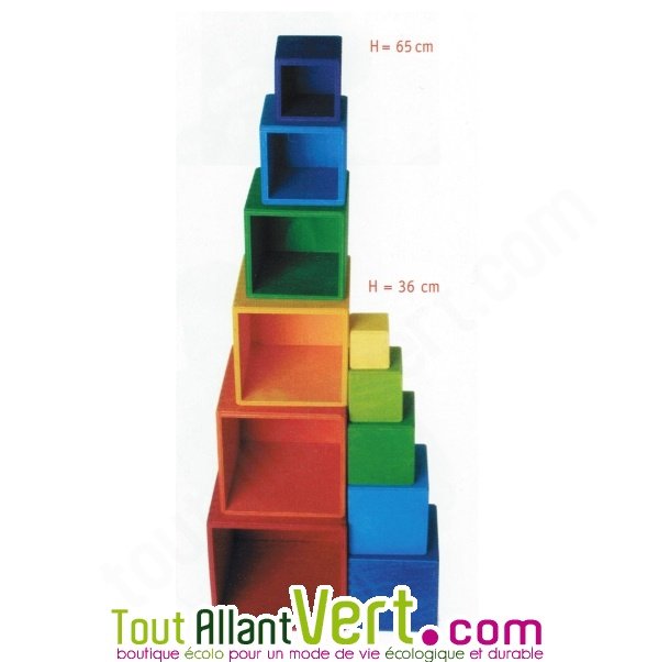 Cube empilable coloré en boisConstruire une tour, génial ! Oh, c'est vide, et chaque cube a un son différent...
