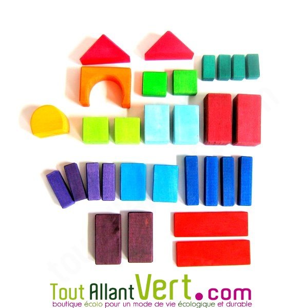 Cube en bois couleur, différentes formes, 30 pièces
