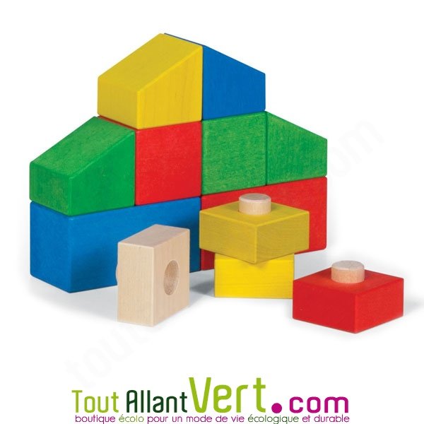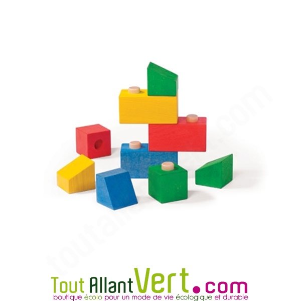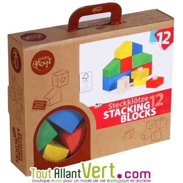 de VarisCes 12 pièces en bois sont comme des "Lego", mais en bois ! Elles s'emboitent, pour construire selon l'imagination dès 1 an. Très solides et durables, elles sont colorées ! Pièces de 4 cm et plus. Bois certifié , forêt gérée durablement. Fabriqué en Lettonie. Emballage en carton recyclé.
