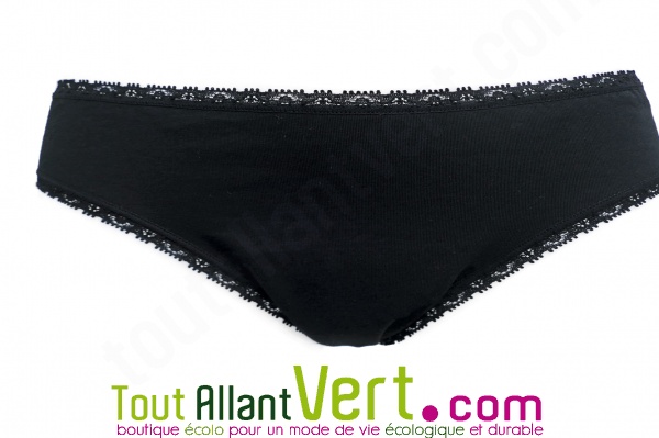 Culotte menstruelle flux légers en coton bio, Noir, taille 40