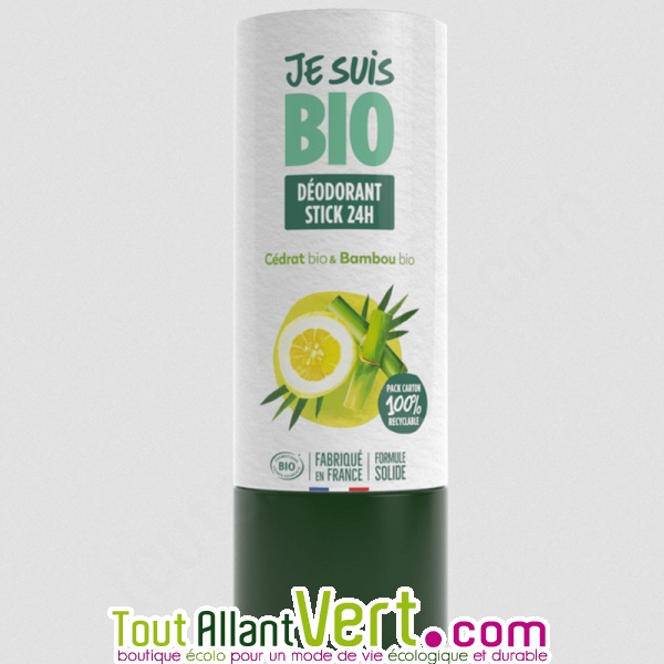 de Je Suis BIO★ ★ ★ ★ ★1 avis clientsDéodorant stick solide sans eau, parfumée au Cédrat et bambou. Efficace 24h . Parfum 100% d'origine naturelle. Certifié Cosmétique bio 50g. Fabriqué en France. Marque Je suis bio.