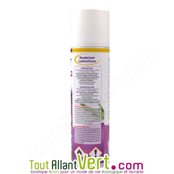 Composition: Lavandula hybride Grosso*, Rosmarinus Officinalis*, Alcohol Denat, Limonene, Linalool (*Issu de l'agriculture biologique).97% du total des ingrédients sont d'origine naturelle.