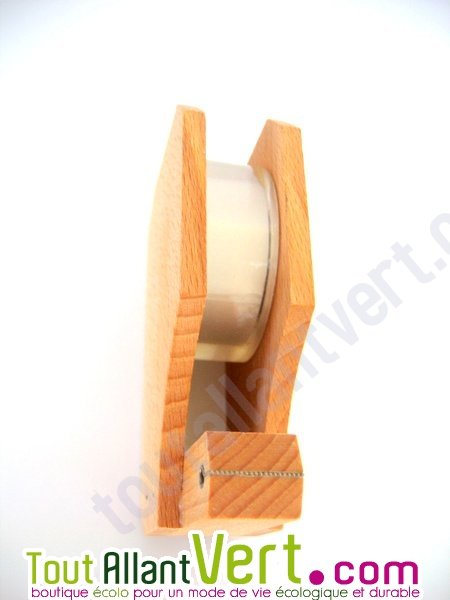 Dévidoir scotch en bois et son rouleau adhésif.Facile à recharger : en un clic, le dévidoir s'ouvre pour se recharger!