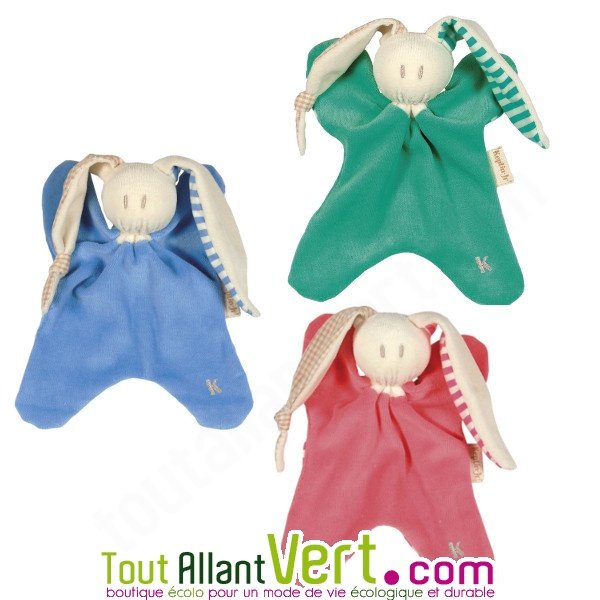 de KeptinFabriqué en coton biologique, ce beau doudou sera un adorable compagnon pour bébé. Confort, bien-être et sentiment de sécurité l'accompagneront durant ses premières années de vie. 3 coloris au choix: bleu, vert, corail. Dimensions: 21x17x6cm (sans les oreilles).