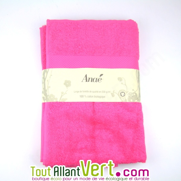 Drap de Bain en éponge, coton biologique. Coloris Framboise.Ces drap sont doux et de belle qualité (550g/m²). De belles couleurs vives, ils sont fabriqués de manière écologique.