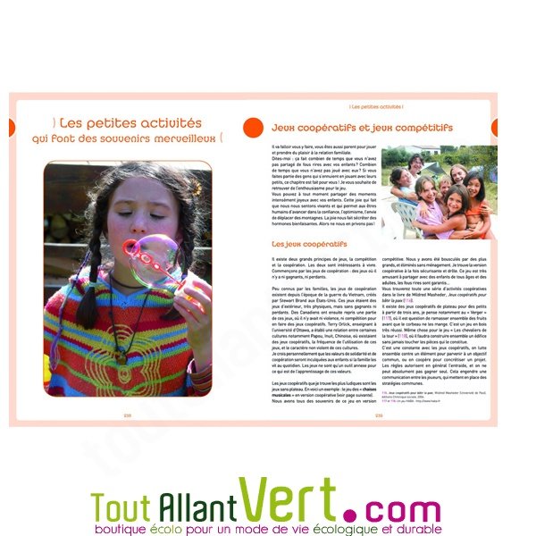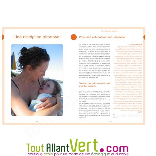 - L'auteur s'appuie sur des articles de spécialistes mais aussi sur des témoignages de parents « experts » en leur domaine qui ont eu la générosité de partager leur savoir-faire : fabrication de couches lavables, hygiène naturelle, portage, langage des signes, allaitement du bambin, jeux coopératifs, mode de garde...