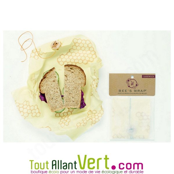 Bee's Wrap, l'emballage 100% naturel, spécial sandwich 33x33cm- Utilisé plusieurs fois dans la semaine, il durera une année