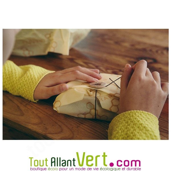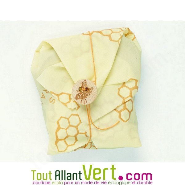 Emballez vos aliments sainement avec cet emballage 100% naturel! Fabriqué à partir de coton bio et enduit de cire d'abeille, il est réutilisable durant une année si l'utilisation est quotidienne. Il est 100% biodégradable et compostable et peut également s'utiliser comme allume feu pour un poele à bois (enroulé autour d'un bout de bois). Le Bee's Wrap n'est pas recommandé pour la viande crue. Garder éloigné des sources de chaleur.