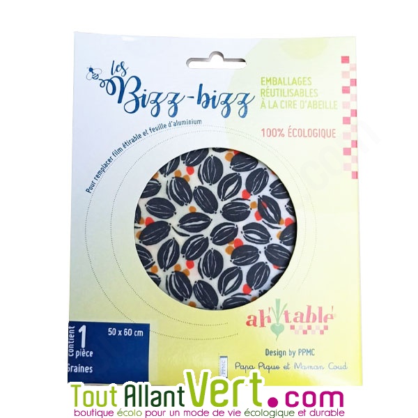 Prix de Emballage tissu bio à la cire d'abeille réutilisable 50x60cm, Graines : 13.95€A propos du fabricant