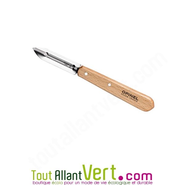 Eplucheur ou économe en inox et manche en bois, Opinel 115.Cet éelucheur à légumes assure un épluchage rapide et efficace de tous les légumes et fruits. Il convient pour un usage droitier et gaucher.