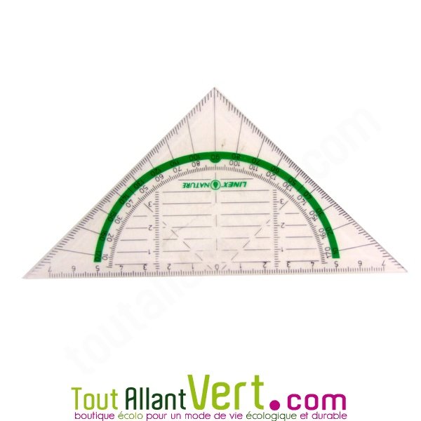 Cette équerre-rapporteur est fabriquée à partir de bioplastique, lui-même fabriqué à partir d'amidon de maïs, une matière renouvelable. Ceci est une belle alternative aux rapporteurs en plastique en PVC.