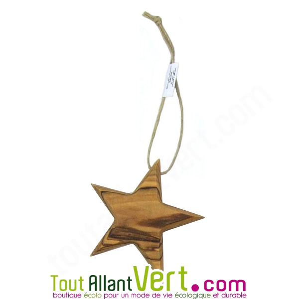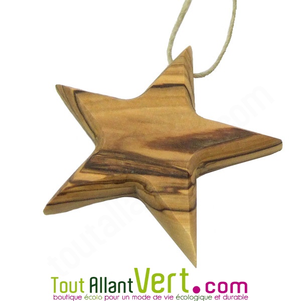 Etoile en bois d'olivier.- Suspension en bois avec ficelle