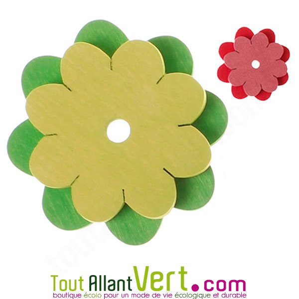 de GrimmsJeu créatif très ludique permettant de créer divers accessoires de mode (chouchou, bracelets...) et de développer la motricité fine et la créativité. 2 fleurs en bois de tailles différentes: 9 cm et 7,5cm. 3 coloris au choix. Fabriqué en Allemagne. Grimm's. 4 an et +.