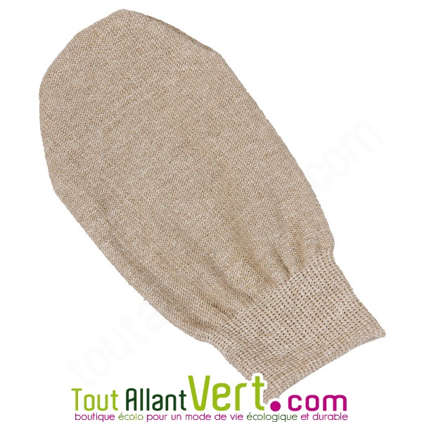 Gant du hammam en lin bio et coton bio. Il vous permet un massage et un nettoyage de la peau relaxant en douceur. Certification GOTS. Dimensions 23x12 cm.