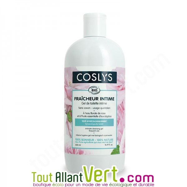 Gel intime COSLYS, à l'eau florale de rose bio, 500 ml, Infinie Douceur.L'eau florale de Reine des Près et de Rose bio sont reconnues pour leurs propriétés anti-inflammatoires et apaisantes. Quelques gouttes sur le gant de toilette, pour un lavage externe très doux. Sans savon, ni antiseptique, un pH est de 5,5. Ce gel préserve la flore vaginale et respecte votre épiderme délicat avec une sensation de fraîcheur pour vous sentir bien toute la journée.