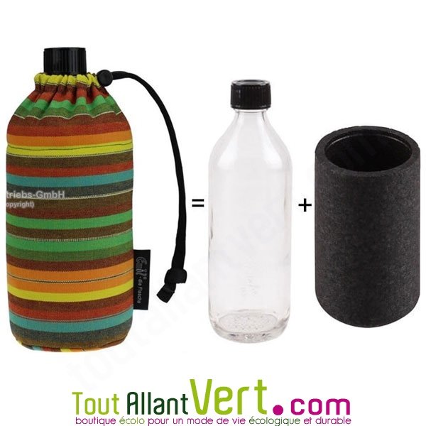 de EmilGourde écologique, en verre ultra résistant avec système breveté 3 couches. Idéal pour eau fraîche mais aussi café, thé, chocolat et autres boissons chaudes. Couleur : Rayé coloré dans les tons marron et orange, Textile coton 100% certifié biologique. Capacité 60cl Poids : 430 grammes environ. ...Ce produit ne fait plus partie de notre catalogueCet article n'est plus disponible à la vente chez nous.Découvrez d'autres produits