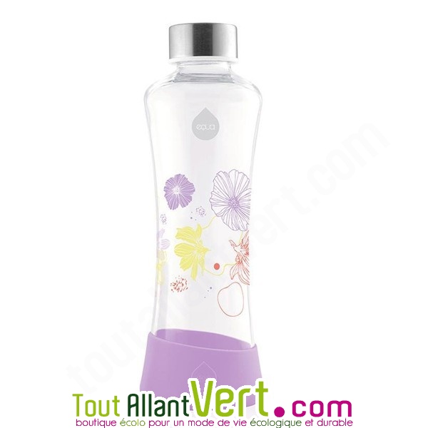 Gourde en verre Equa, fond silicone, Coquelicot lavande, 550mL