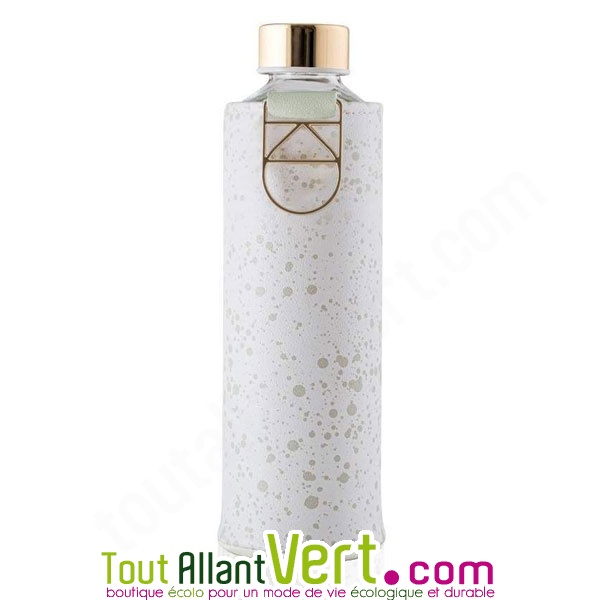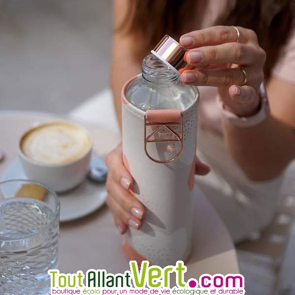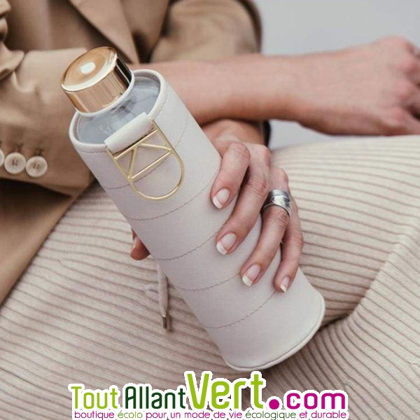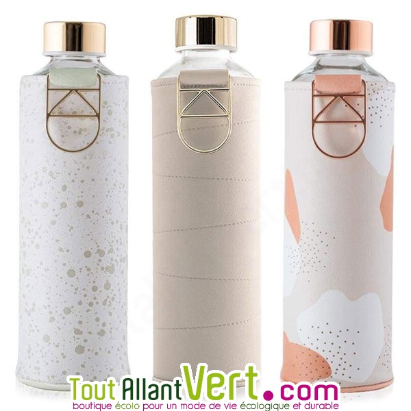 Une bouteille en verre de 750ml dans un fourreau en faux cuir avec boucle mettalique. Un mélange atypique, mais sain et naturel ! 100% étanche. Bouchon à visser. Saine et sûre, sans Bisphénol A, ni produits chimiques. Elle convient pour tous types de boissons, même chaude. Passe au lave-vaisselle. Idéal au bureau, en ville, en balade... Fabriqué en Europe.