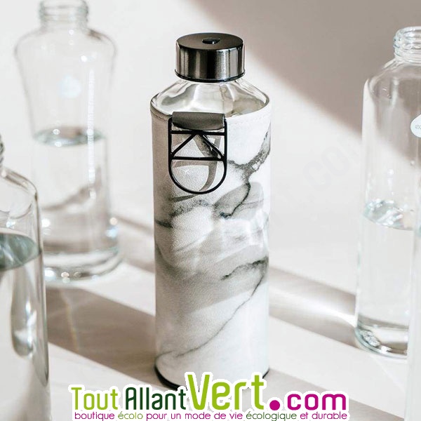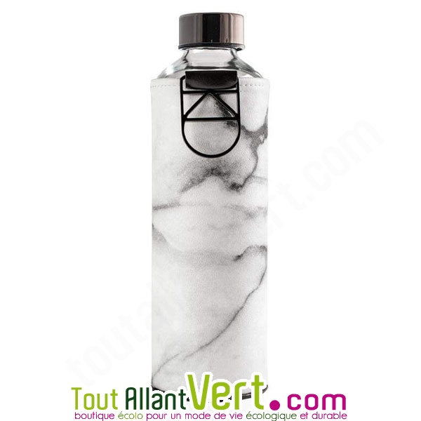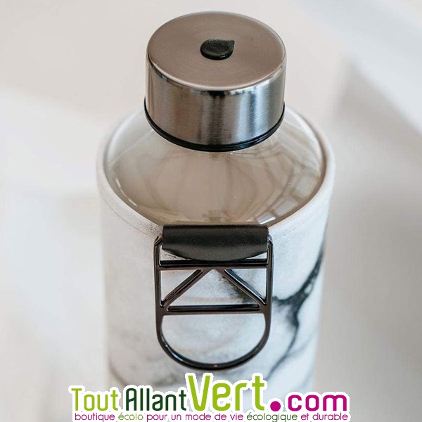 ★ ★ ★ ★ ★1 avis clientsUne bouteille en verre de 750ml dans un fourreau en faux cuir marbré noir avec boucle mettalique. Un mélange atypique, mais sain et naturel ! 100% étanche. Bouchon à visser. Saine et sûre, sans Bisphénol A, ni produits chimiques. Elle convient pour tous types de boissons, même chaude. Passe au lave-vaisselle. Idéal au bureau, en ville, en balade... Fabriqué en Europe.