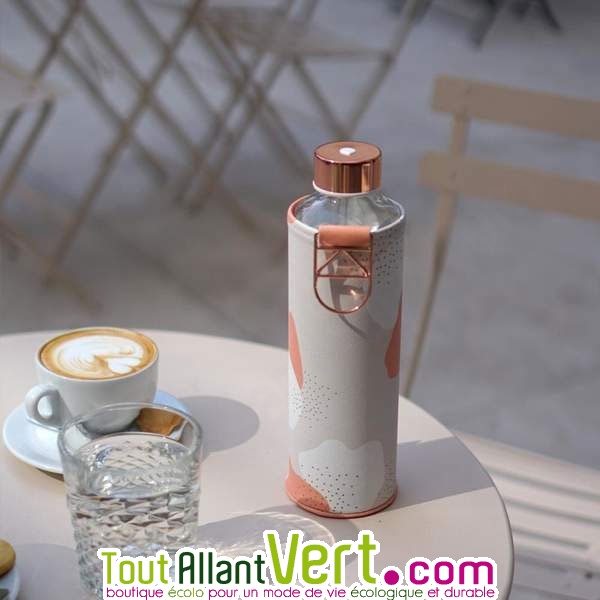 Une bouteille en verre de 750ml dans un fourreau en faux cuir nuages colorés avec boucle mettalique. Un mélange atypique, mais sain et naturel ! 100% étanche. Bouchon à visser. Saine et sûre, sans Bisphénol A, ni produits chimiques. Elle convient pour tous types de boissons, même chaude. Passe au lave-vaisselle. Idéal au bureau, en ville, en balade... Fabriqué en Europe.