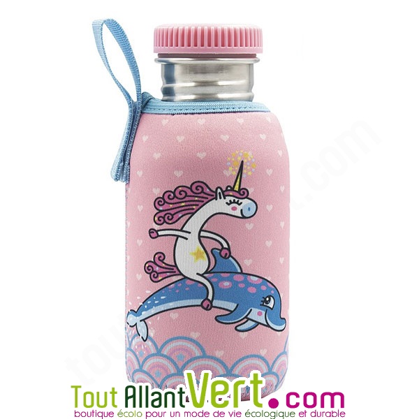 Gourde enfant inox 500ml Housse Licorne sans bisphénol A ni revêtement