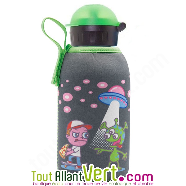 Gourde enfant inox isotherme 0,35 litre Housse OVNI sans bisphénol A ni revêtement