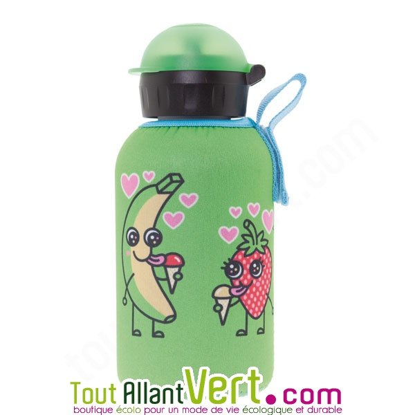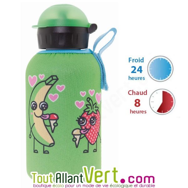 Gourde inox isotherme enfant 0,35 litre avec Housse de protection verte Fruits