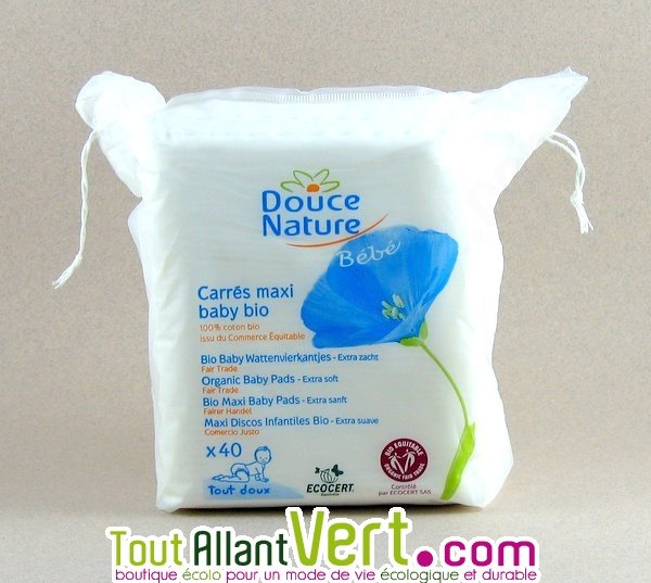 Des carrés en coton bio très doux pour la peau de bébé. Vous pouvez les utiliser pour nettoyer le visage ou le corps de bébé. Il convient également pour appliquer les laits de toilette et autres soins.