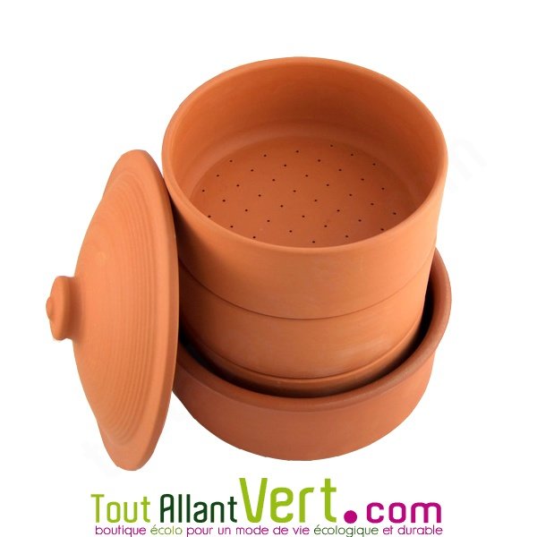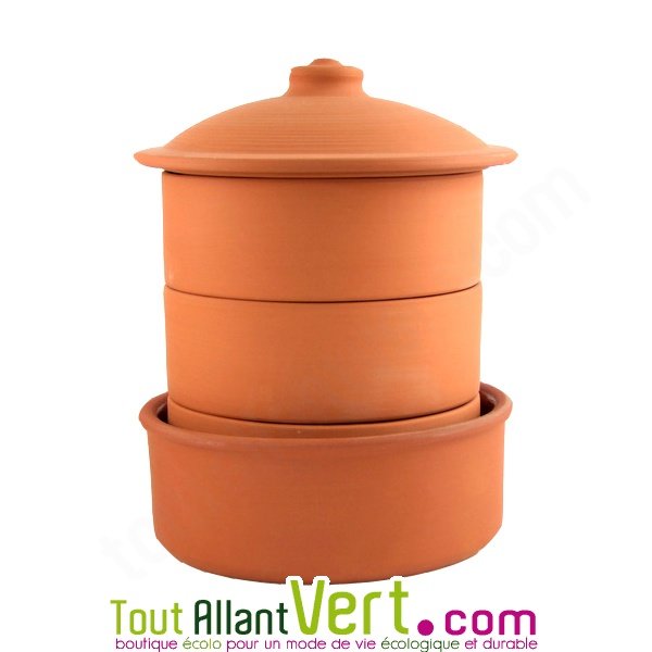 Germoir en terre, 3 étages pour graines bio à faire germer.Ce germoir en terre cuite offre un environnement idéal pour la germination des graines : ombragé et retenant l'humidité comme dans la terre d'un jardin. La terre du germoir retient 10% de l'eau lors des différents rinçages et le restitue peu à peu aux graines à germer jusqu'au prochain rinçage. Le surplus de l'eau s'écoule doucement dans le dernier plateau. Il suffit de le vider