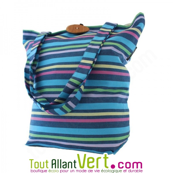 Prix de Grand sac cabas en toile rayé bleu et coton Bio : 19.83€ au lieu de 30.50€ Remise de -35%