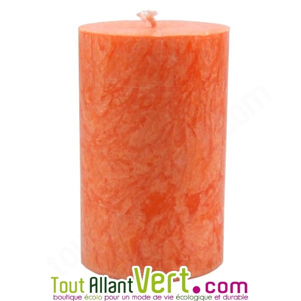 Grande Bougie Orange cylindrique en stéarine 100% végétale et bio.- 50 heures de combustion