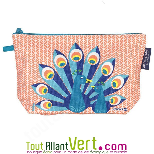 Grande trousse d'école Paon en coton bio 22 x 13 cm