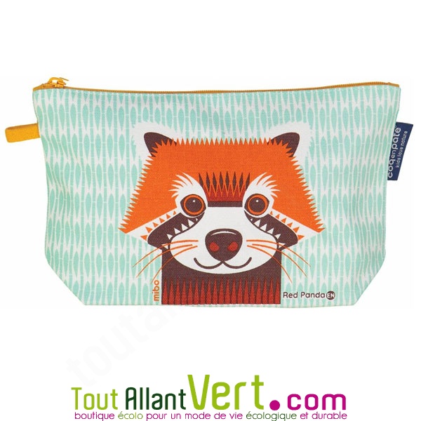 Grande trousse en coton bio Panda Rouge 22 x 13 cm