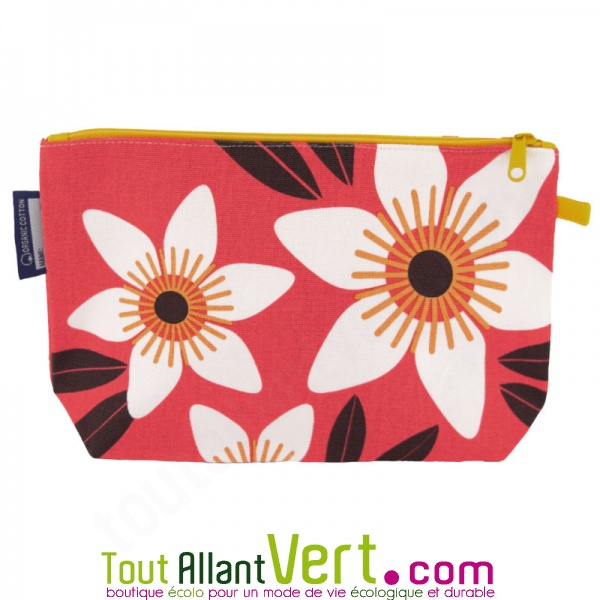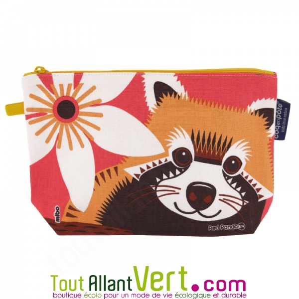 de Coq en PâteGrande trousse en Coton bio. Avec un soufflet de 6 cm, idéal pour ranger tout ce qu'il faut pour l'école. Motif Panda Roux et fleur sur fond rouge. Finitions soignées et résistantes. Fermée par une fermeture éclair jaune. 13 x 22 cm. Marque Coq en Pâte.